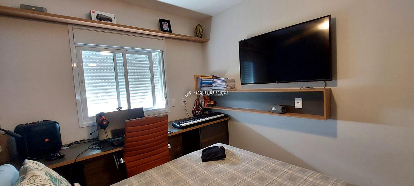 São 3 suítes, lavabo, ampla cozinha, sala de tv e sala de estar, varanda envidraçada.